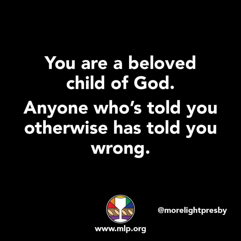 Below are some images I’ve taken from social media that include other resources. I’m noticing that one is from More Light Presbyterians which focuses on affirming LGBTQ+ folks in Presbyterian Churches but the sentiment seems to apply to racial injustice too; You are a beloved child of God.