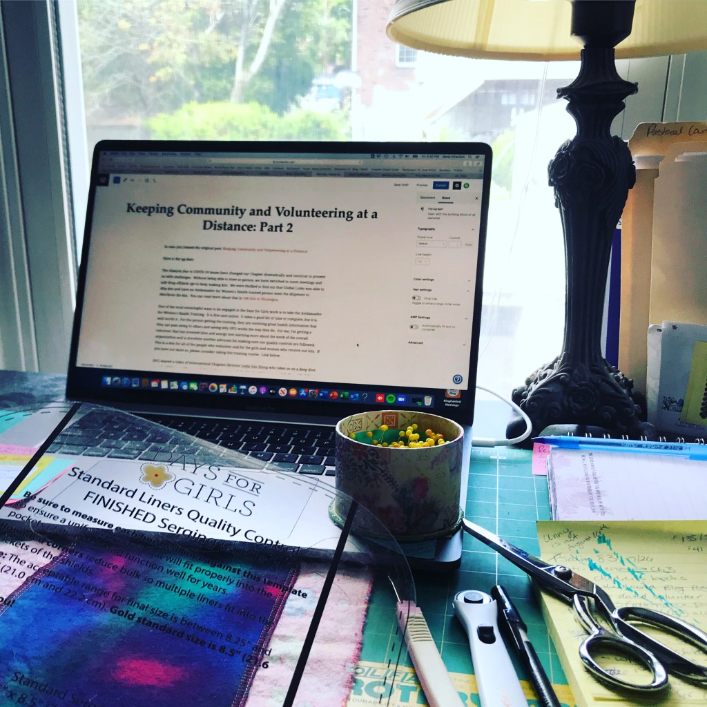 The closures due to COVID-19 issues have changed our Chapter dramatically and continue to present us with challenges. Without being able to meet in person, we have swtiched to zoom meetings and safe drop off/pick ups to keep making kits. We were thrilled to find out that Global Links was able to ship kits and have an Ambassador for Women’s Health trained person meet the shipment to distribute the kits. You can read more about that in 500 Kits to Nicaragua.