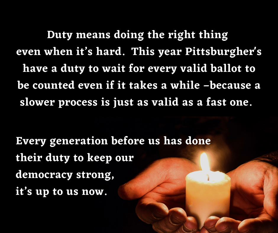 I’ve been thinking and trying to prepare for what is about to happen in the Pittsburgh area after the election. There are many people who are worried about voter suppression happening at the polls tomorrow and the de-escalations trainings I’ve linked below cover those scenarios. It’s important to know the rules for your state before going to the polls. The most important thing I got from these sections of the presentations was about not worrying about how long its going to take to vote. Don’t be afraid to get out of line to get a poll worker if you are being harassed (or if you see someone being harassed and they have indicated they want you to intervene). Saving your place in line is not your primary concern. De-escalating a situation and getting the right help is more important. If you are voting in person, plan on it taking a little longer than normal. Also, remember everyone is feeling a little anxious, so the more calm you can be (or appear to be) the better it is for everyone around you.