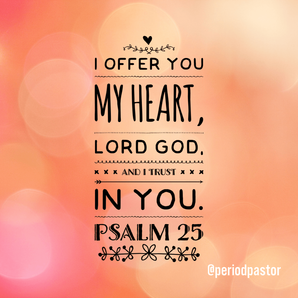 I offer you my heart, Lord God, and I trust you. Psalm 25:1-2a (CEV)