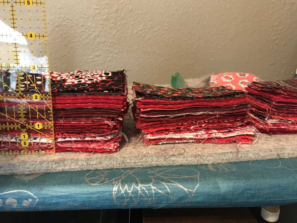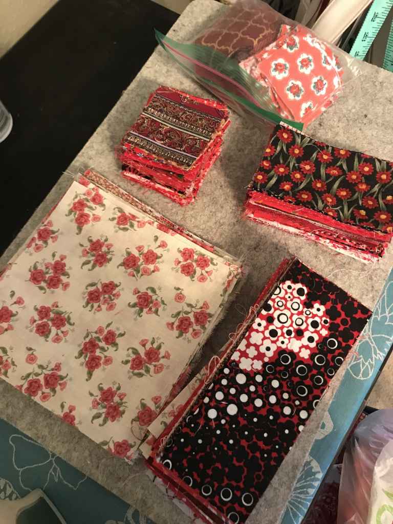 - I will need to lay out the pieces to determine the pattern and size of the finished quilt. It’s possible that I will have to purchase other fabric or decide to save these pieces to be used with other colors that will be cut later.