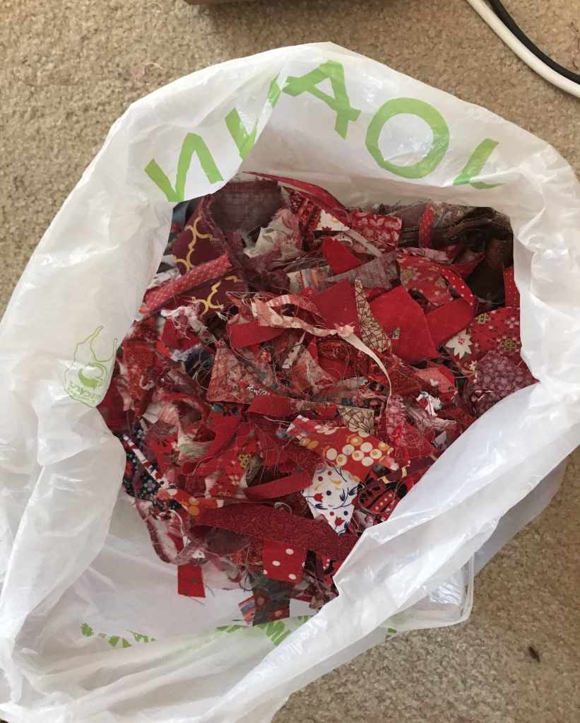 The scraps are quite beautiful. I wouldn’t have thought to see them into a quilt.