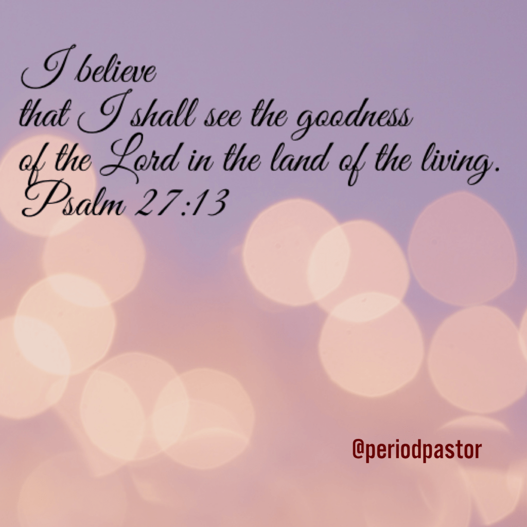 I believe that I shall see the goodness of the Lord in the land of the living. Psalm 27:13 NRSV