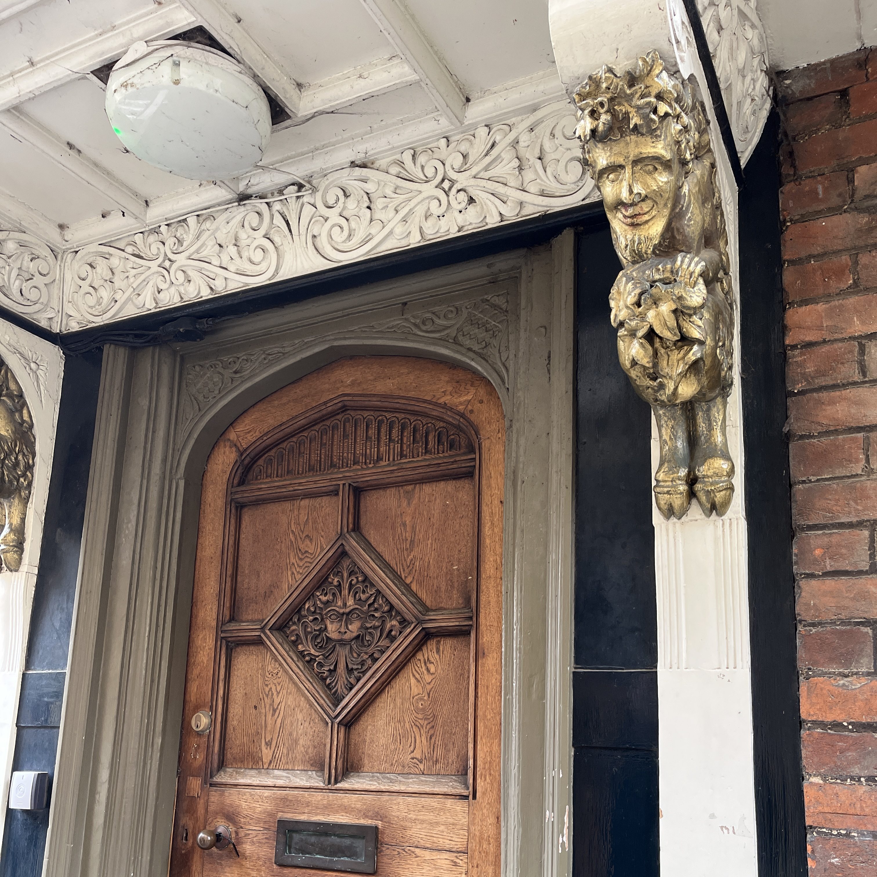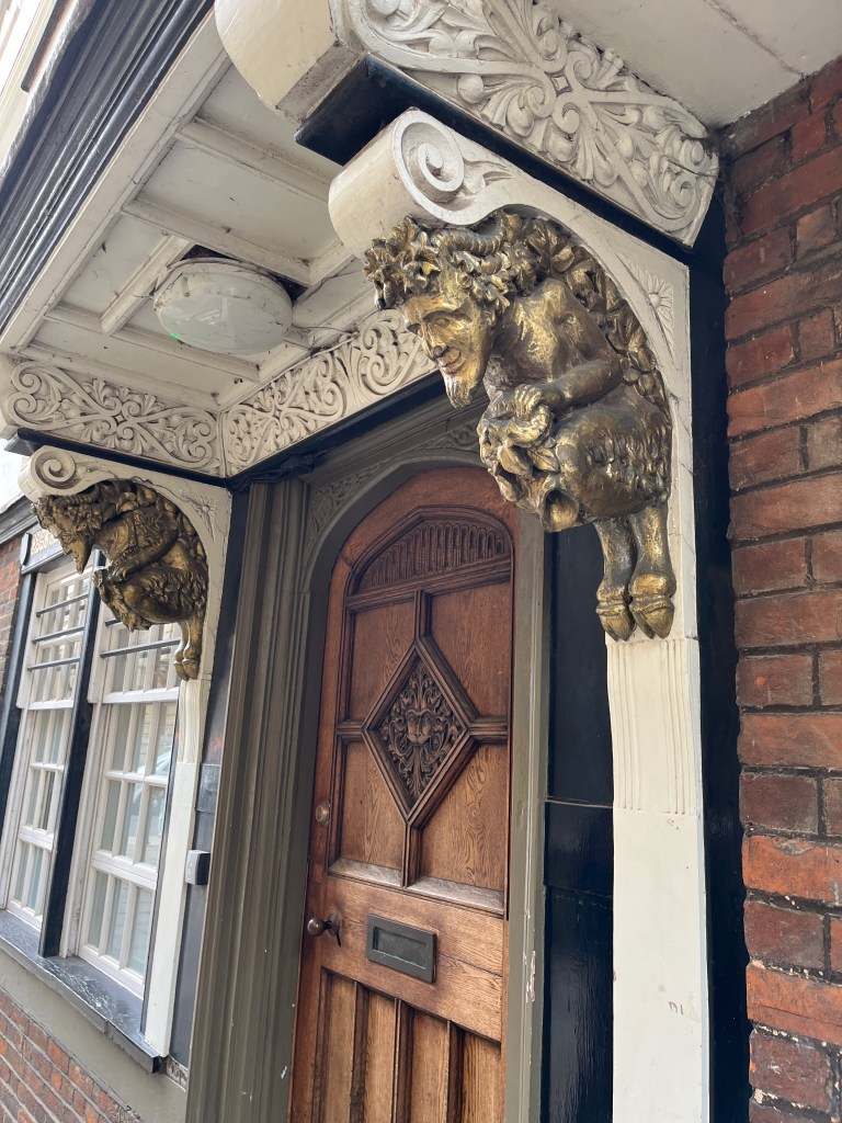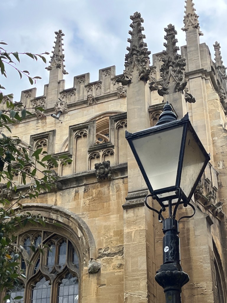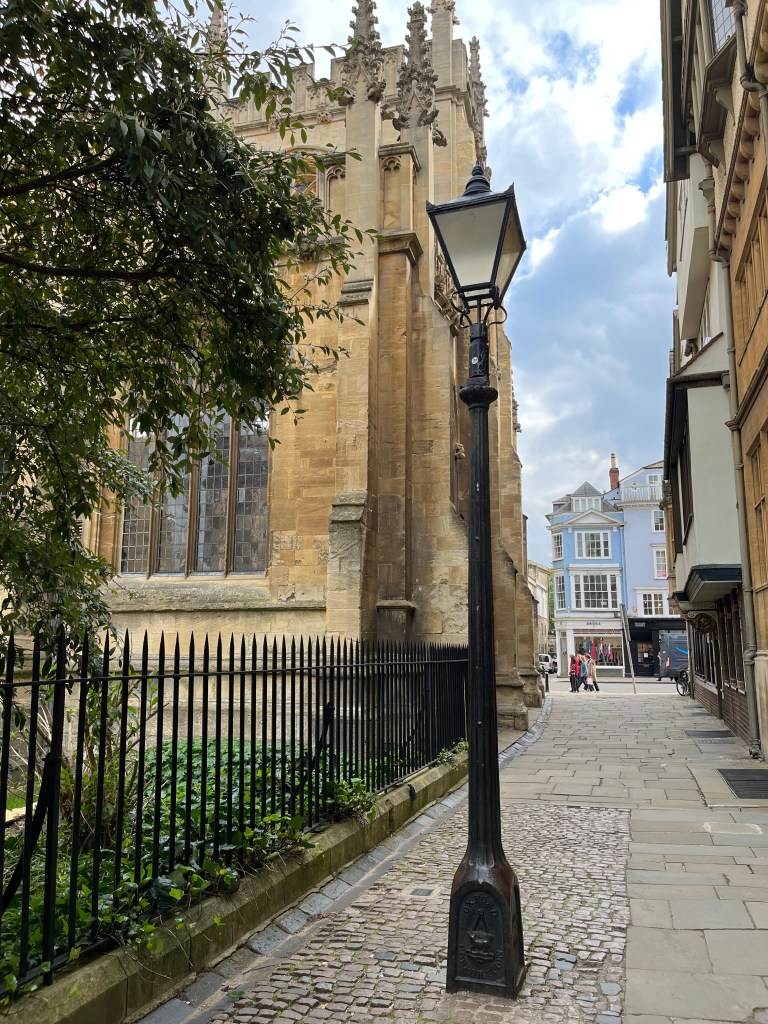 This next set of pictures is between Brasenose College and the University Church of St. Mary the Virgin. The oldest surviving lamp post in Oxford and the carved images of the fawn and the green man on the door are thought to have inspired C. S. Lewis’s Chronicles of Narnia.