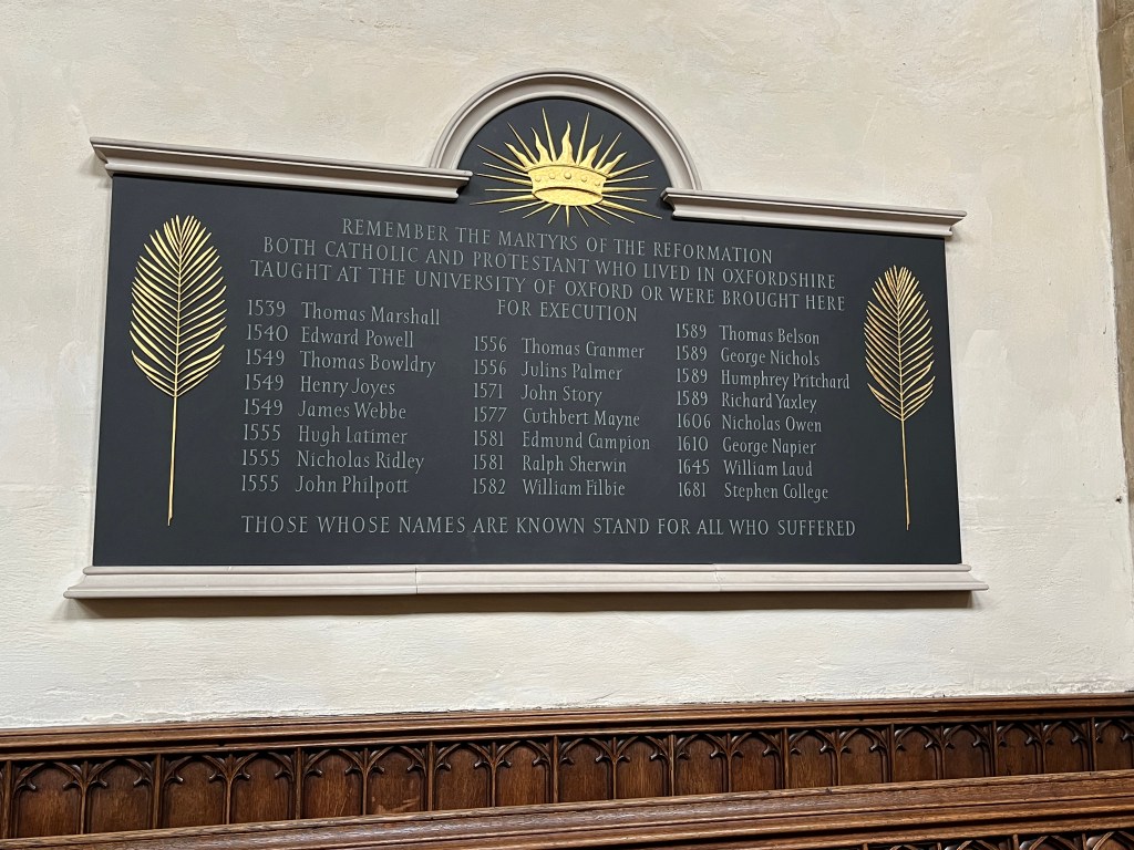 University Church of St. Mary the Virgin has a memorial plaque to the Martyrs of the reformation (both Catholic and Protestant).