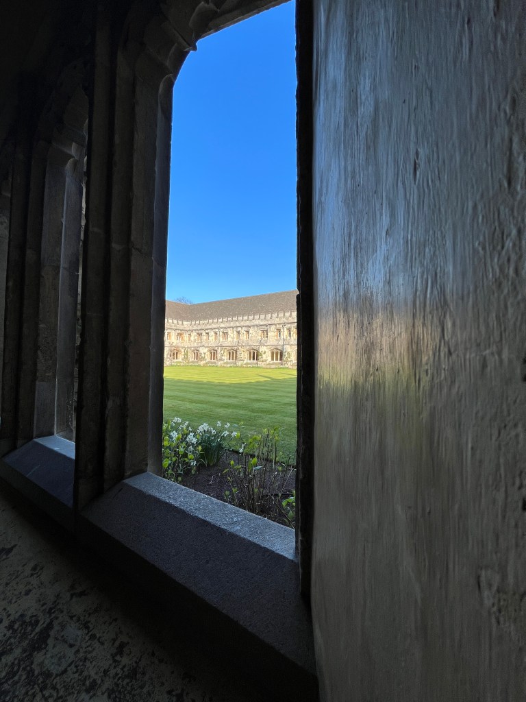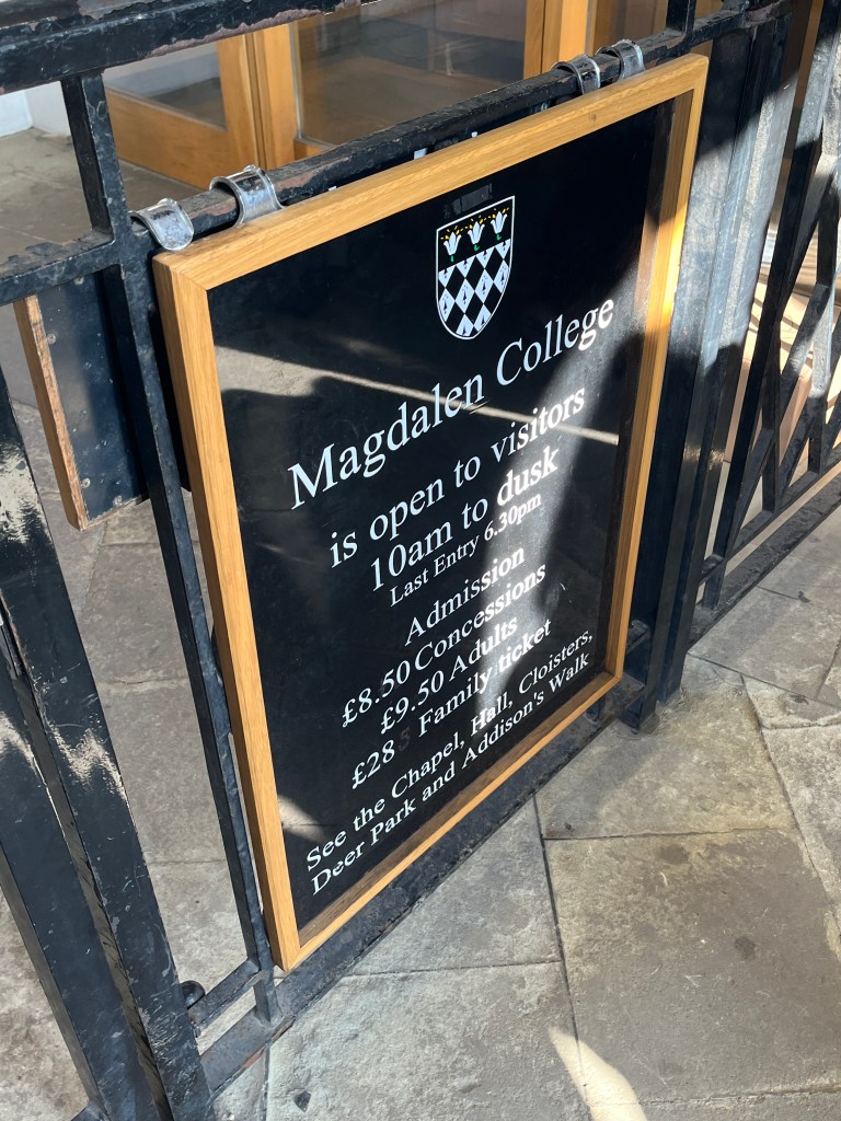 Later, we took a tour around Oxford. It was a long tour but luckily nothing was far from our hotel, so a few people decided to go back and rest. I made myself stick it out. I was practicing not running through the events of the last few months or going through the list of things I hoped to accomplish during the sabbatical or making plans for my next steps after the sabbatical. I knew if I went back to the hotel room, I would just cycle through those things and feel guilty about thinking of the things that I cannot control and feel shame about not doing the planned adventure. I needed to pay attention to something else other than my own thought spiral. I’m glad I stuck with the tour, I was able to get out of my spinning brain and pick up a couple of interesting things the guide said. And the last stop, Magdalene College was my favorite part of the tour.