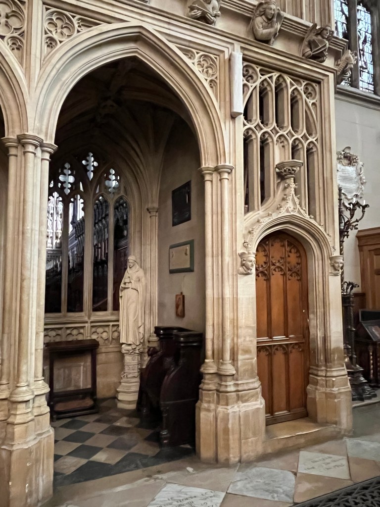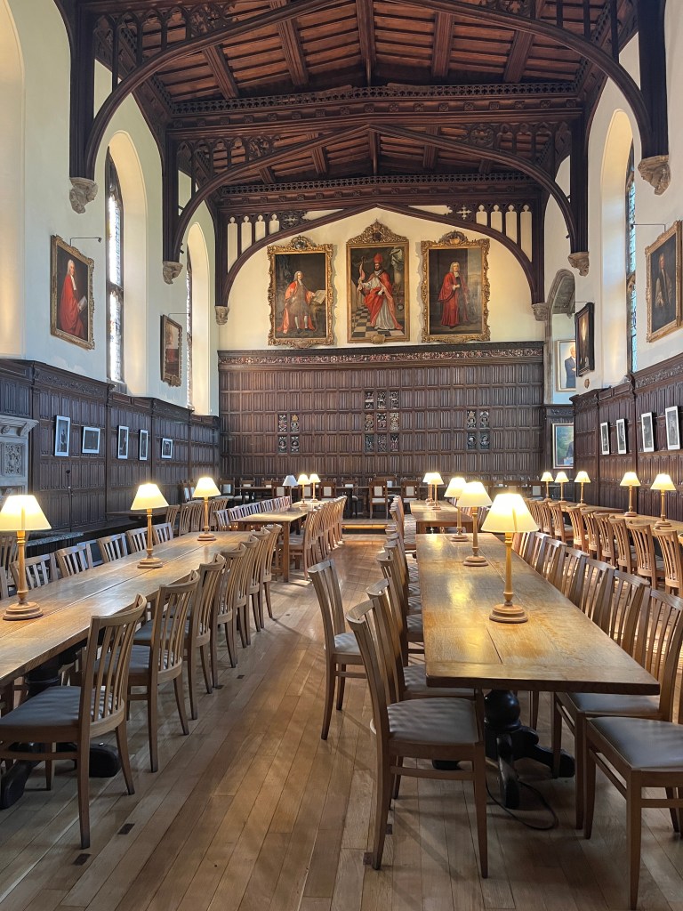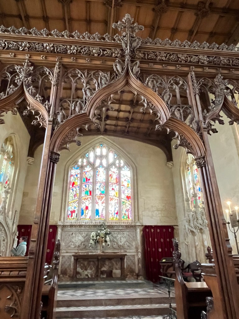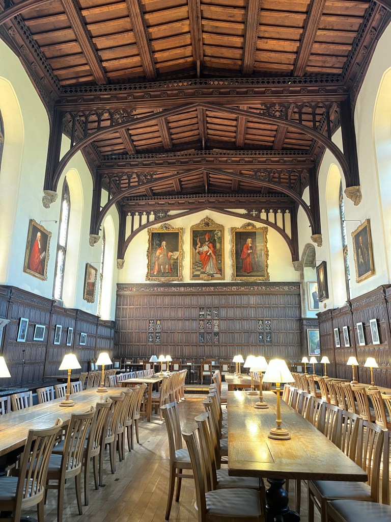 Magdalen College was our last stop (usually the tour guide ends in a pub frequented by the inklings but those pubs have been closed since the pandemic). It was also one of the few places we could go inside and tour the grounds. We even got to see the chapel and hear the choir. And we saw a dining hall. Most colleges have a dining hall like this and I think a few of them claimed to have inspired the Harry Potter great hall.