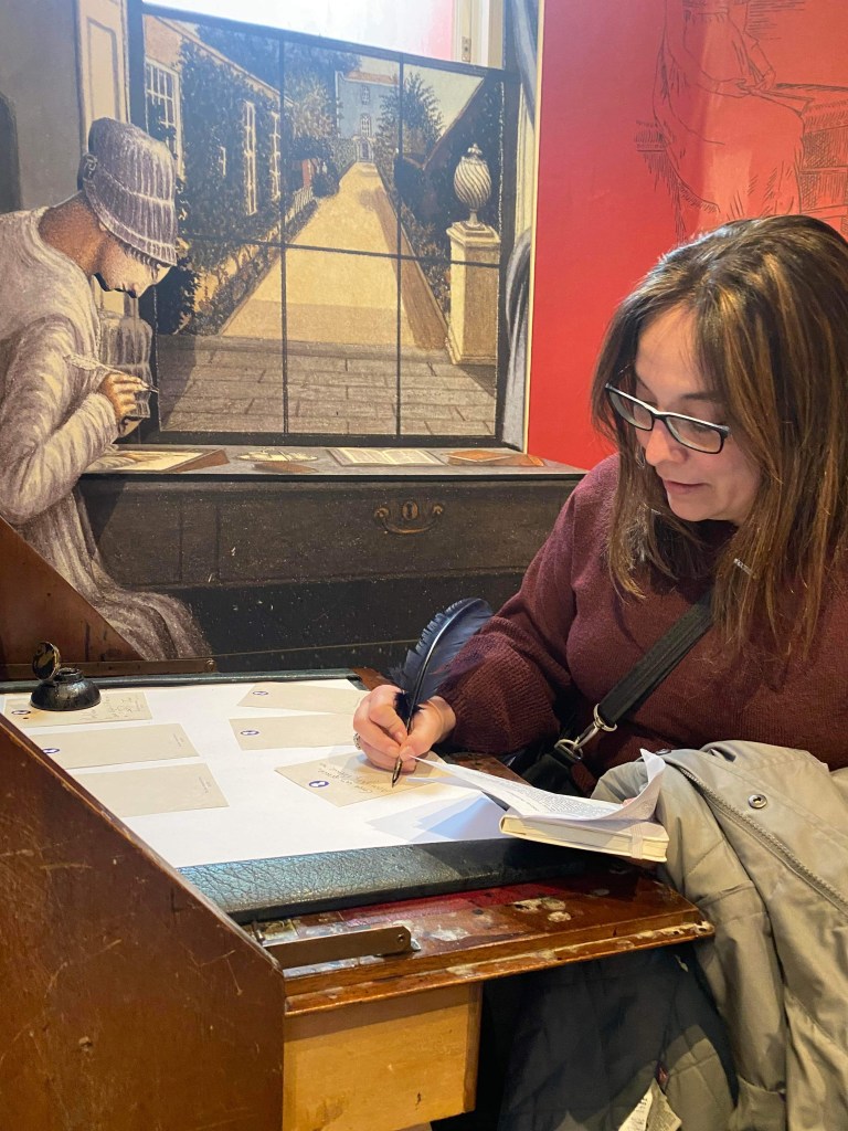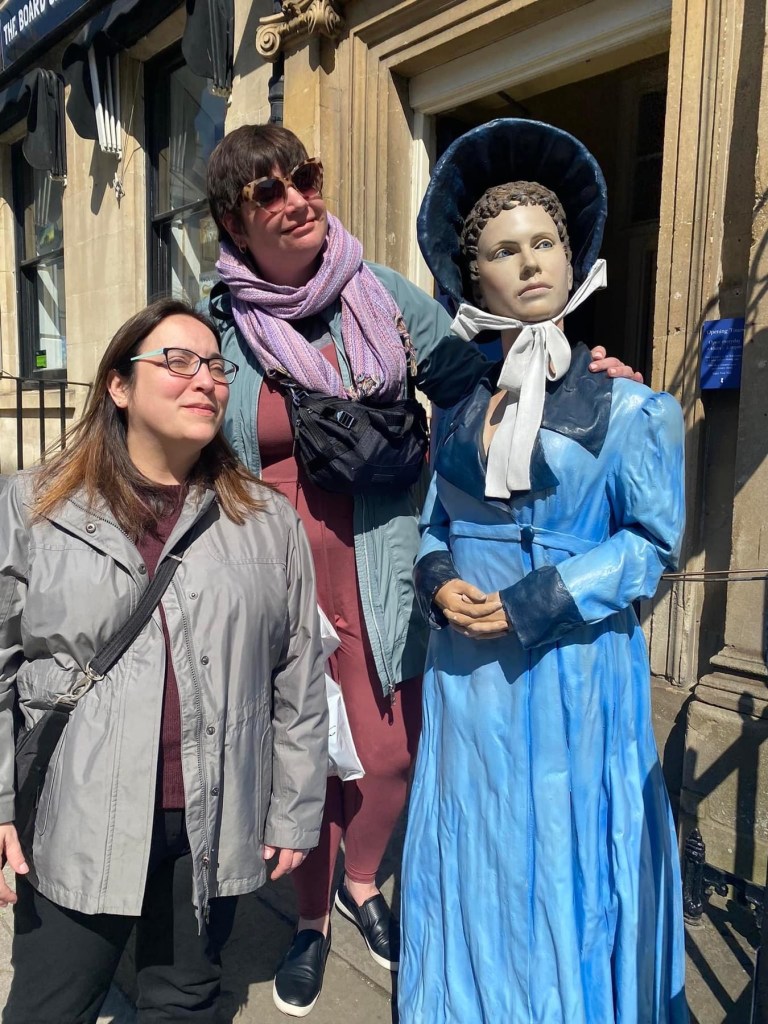 The Jane Austen Centre far exceeded my expectations. It was silly and fun. We were guided through the museum by characters from Jane’s novels. Everything in the museum was interactive, we got to smell perfume, taste biscuits, write with a quill pen like Jane, and we took silly pictures in costume with “Mr. Darcy”. Then we had tea and visited the gift shop to invest in our happiness.