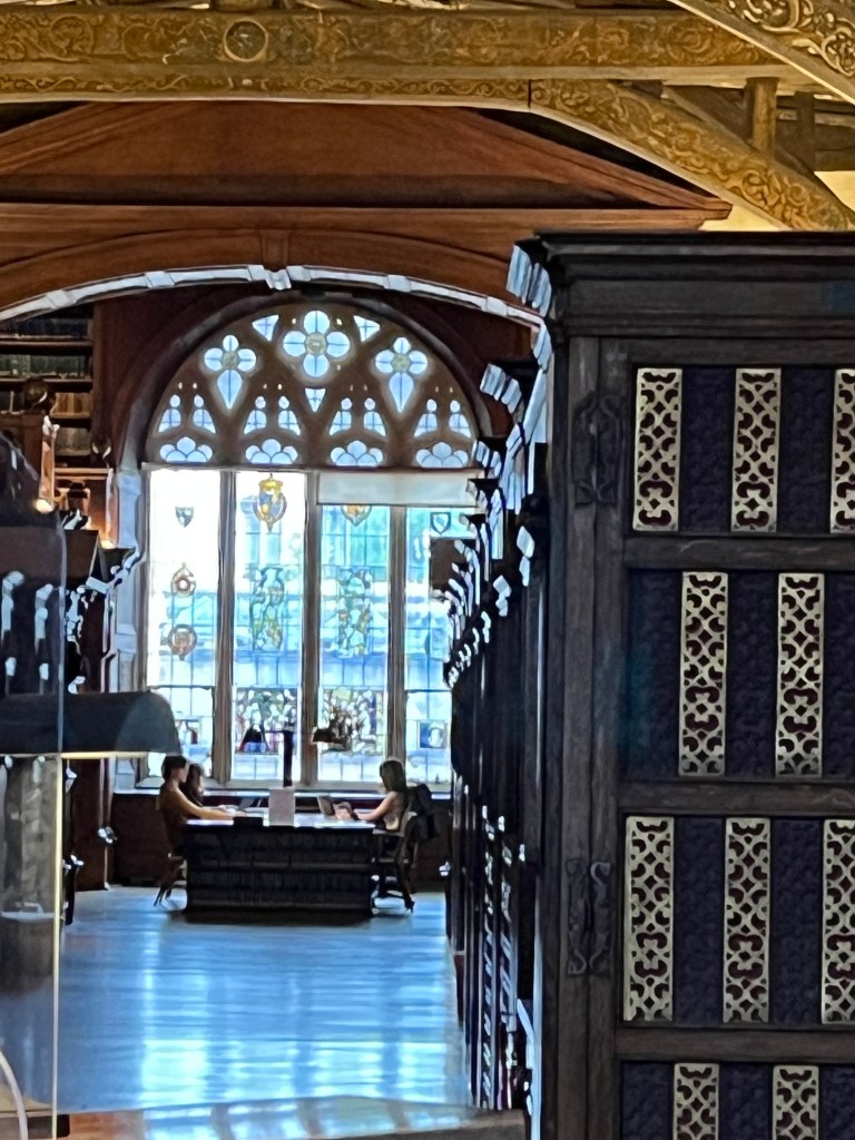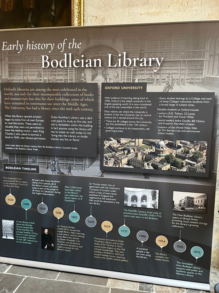 Today’s adventure started with the Bodleian Library and a trip to Blackwell’s book store. Learning is essential to my faith and I know that it is central to other faiths, too. I can’t imagine destroying someone’s holy books and study materials, especially when those books were hand written. And yet, people have been hurting each other this way forever. This library starting with only a few books, grew to a collection of over 200 books only to have them destroyed. But the love of learning prevailed and now this library has over a million books.