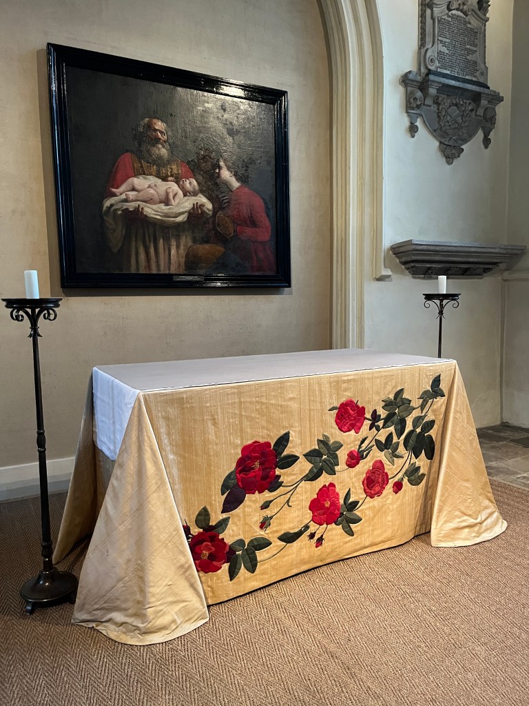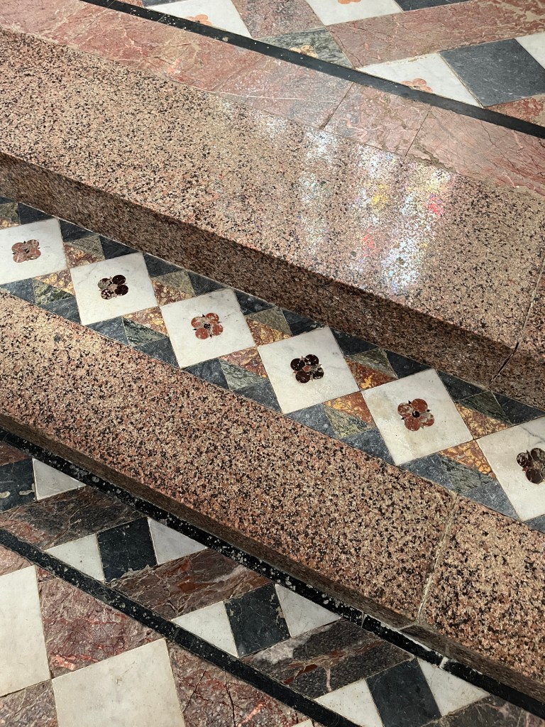 The chapel where Kateryn is buried is like stepping into a lovely jewelry box, there is something of the queen’s elegance and restraint throughout. I especially loved the tiny flowers in the flooring. They reminded me of the DfG logo. I purchased a Tudor Rose for my DfG apron at the gift shop.