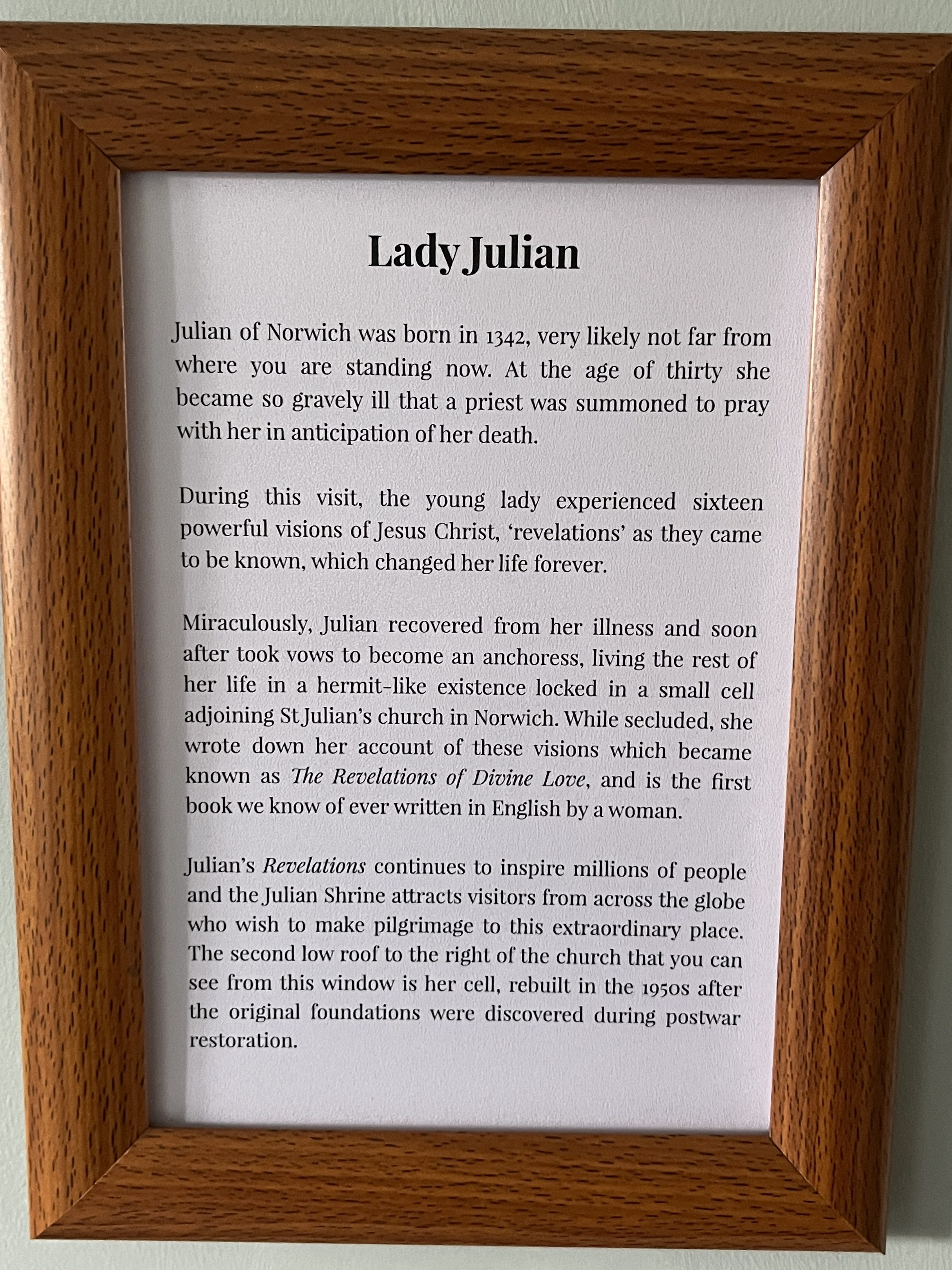 We were in Norwich just ahead of the 650th anniversary, but I’ve been following along on facebook. If you are considering a pilgrimage, I would highly recommend Norwich and All Hallows Guesthouse. We had a wonderful time and it’s only going to get better.