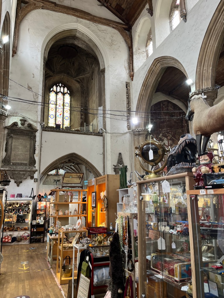 Two churches: one alive (St. Peter Mancroft) and well the other is an antique store (St. Gregory’s).