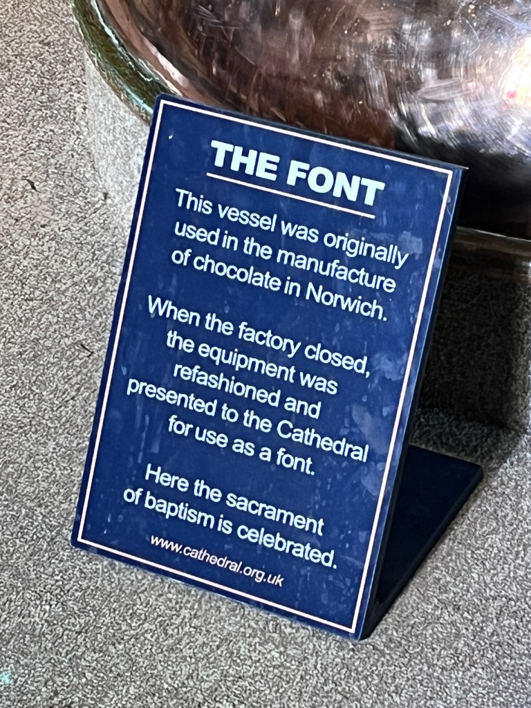 Morning Mass in Julian’s cell… I was so enthralled I didn’t take a single picture. There was a group of ladies already there and they scooted around to make room for us. They were local and one of them was the sister of the visiting priest. (The assigned priest was away on a pilgrimage but we got to meet him for morning prayer on our last day). They were thrilled to know we were on a pilgrimage and staying at All Hallows Guesthouse. Everyone we encountered at Norwich knew the couple that has (and is) renovating the guesthouse and they are so proud of them. In some ways, Norwich felt like a small community.