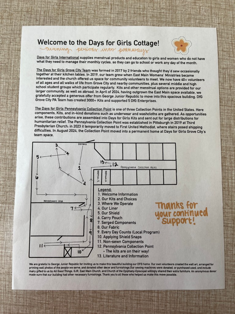 We are all “sew” thankful to George Junior Republic, CEO Nate Gressel and the Board of Directors for allowing us to use this wonderful building on their campus. Their maintenance crew has been a huge help in getting the space ready too. It would be difficult to name all of the things they have done for us. Notably, they helped us hang the heavier and bulkier items like the bulletin board and map. They gave us a brand new vacuum cleaner when the one that was in our supply closet broke just before open house. They made sure we had a full size refrigerator to store all of our goodies.