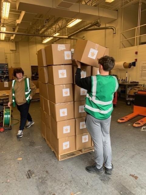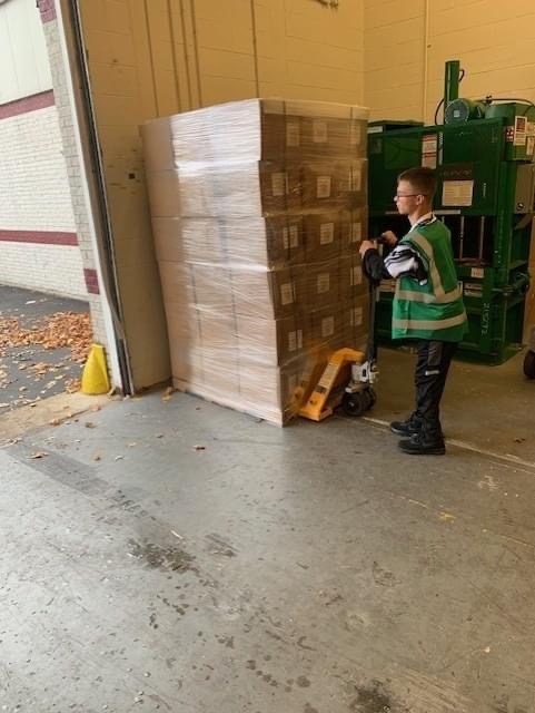 Our lovely cottage is a perfect place for us to work and to store our inventory but we needed another partner to help us with the palletizing and shipping. Mike Whalen, instructor for Logistics, Material & Supply Chain Management at the Mercer County Career Center and his students received our boxed kits, palletized them, and coordinated with our shipping partners. We are looking forward to continuing to utilize their skills on upcoming projects.