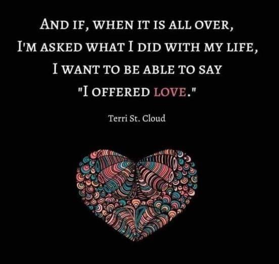 Love gave birth to the universe and lives in every part of creation. Love frees us from our illusions and guides us in our journeys. Love calls us to work for justice for the oppressed. Love asks us to give food to the hungry, to visit the sick and imprisoned, and to care for our neighbors. Love tells us to let go of our fears and embrace one another. Love lives in all of us connecting us with each other and with all of creation.