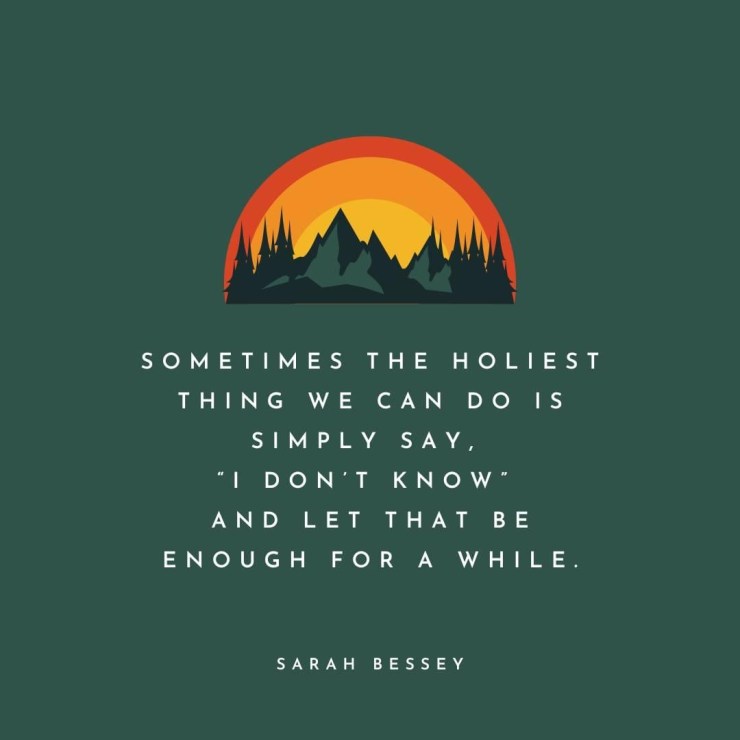 My brain can’t figure out all of the why’s and how’s but my heart somehow finds comfort in the not-knowning-ness too. I don’t know why some of us experience miracles, others get enough of God’s presence to sustain themselves, and why others seem to languish in despair. Some things that I can’t explain are wonderful, and some things that I can explain are terrible. When miracles can’t be explained, our response is gratitude. When tragedies can’t be explained, our response is love. And in these awful situations, love is as simple as being present and letting not knowing be enough for a while.