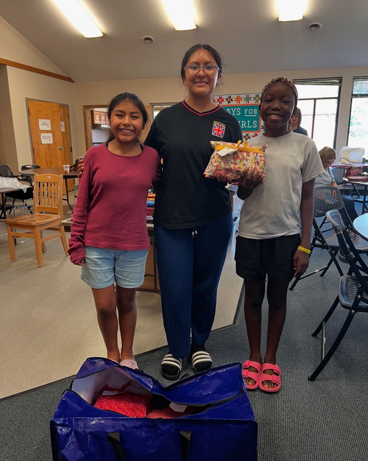 I gave a quick demonstration on how to put the pad in underwear for the girls. In their choir, the older girls teach the younger girls so this will be something they can pass along through their already established mentor/mentee practice. Each girl will receive a DfG trifold in their native language so they have access to the DfG education. Because we knew the girls underwear sizes and languages, we wrote their names on the tags to ensure everyone got what they needed. When I picked up a kit for them to hold in the photo it was actually the kit for the girl on the right. She hasn’t had a period yet, but she is looking forward to using her kit when the time comes.