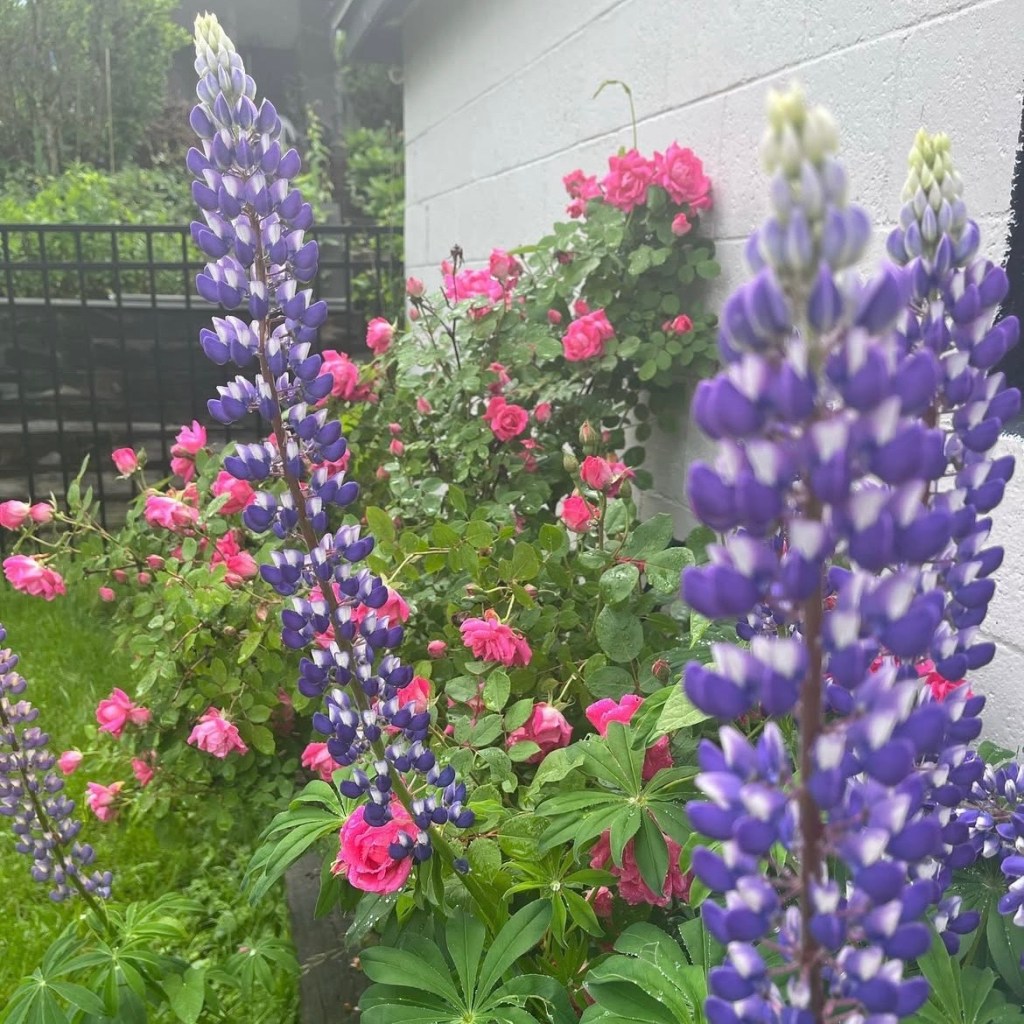 The pictures above are of my garden in the spring of 2022. It’s a little messy but I love the riot of color with the roses and lupins growing close together.